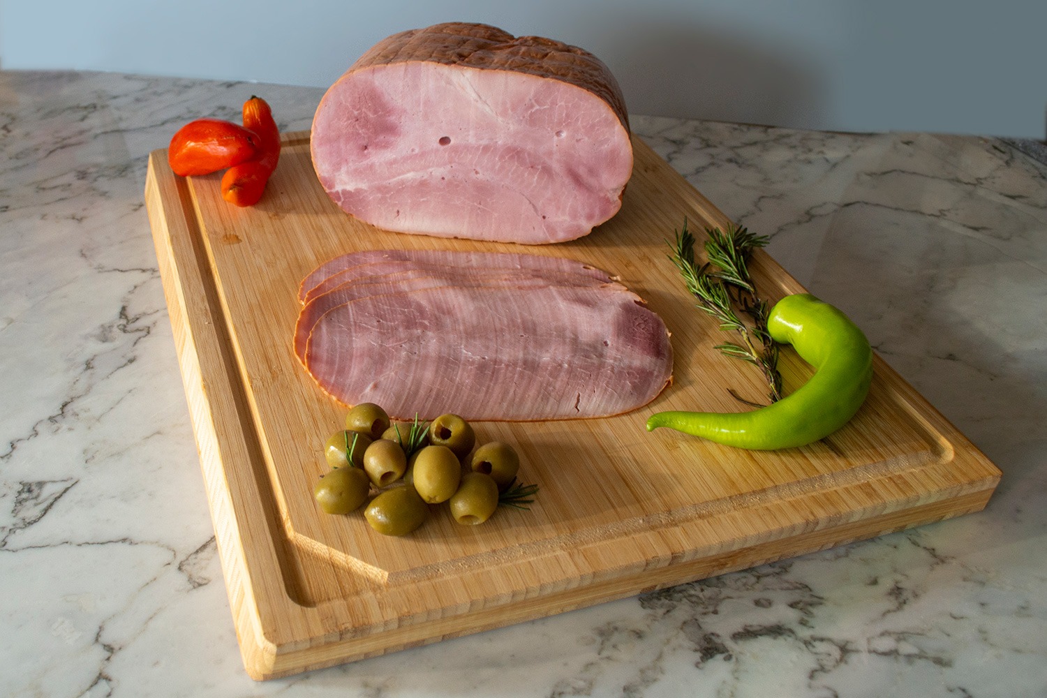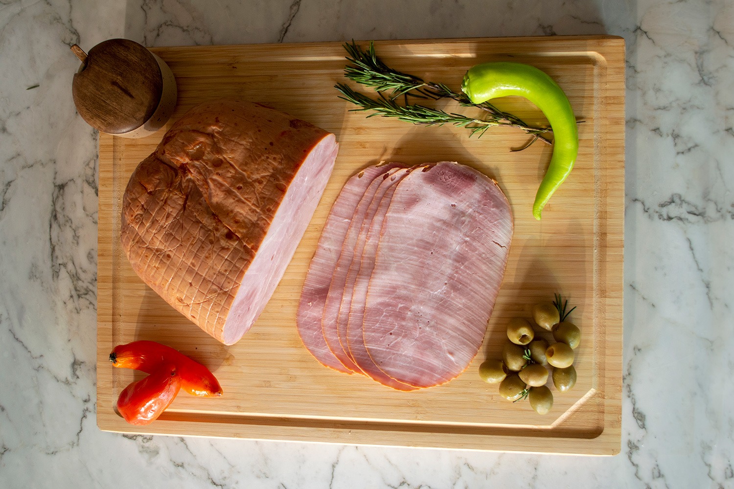 - Jamón de cerdo con delicado sabor tradicional y un toque de ahumado.
